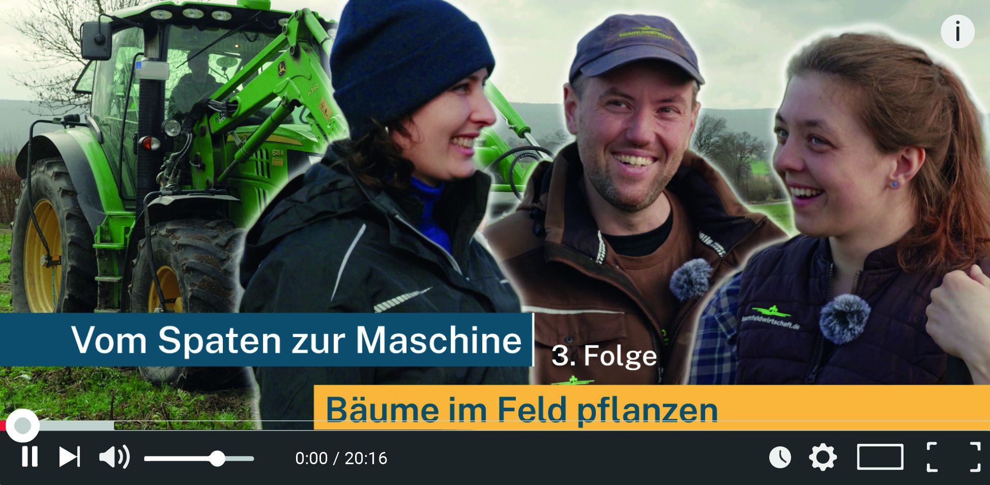 Regie, Schnitt, Produktion; zweite Kamera und Drohnenaufnahmen für eine 7 teilige Lernreportage über Agroforst. Agroforstsysteme sind Gehölzstreifen oder Einzelbäume auf landwirtschaftlicher Fläche (definiert in der GAPDZV §4). Dabei wird der Acker- oder Grünlandstatus beibehalten. Bei der Auswahl der Gehölze ist die Vielfalt groß: Sie können zur Produktion von Nüssen, Obst, Futter oder Holz genutzt werden.